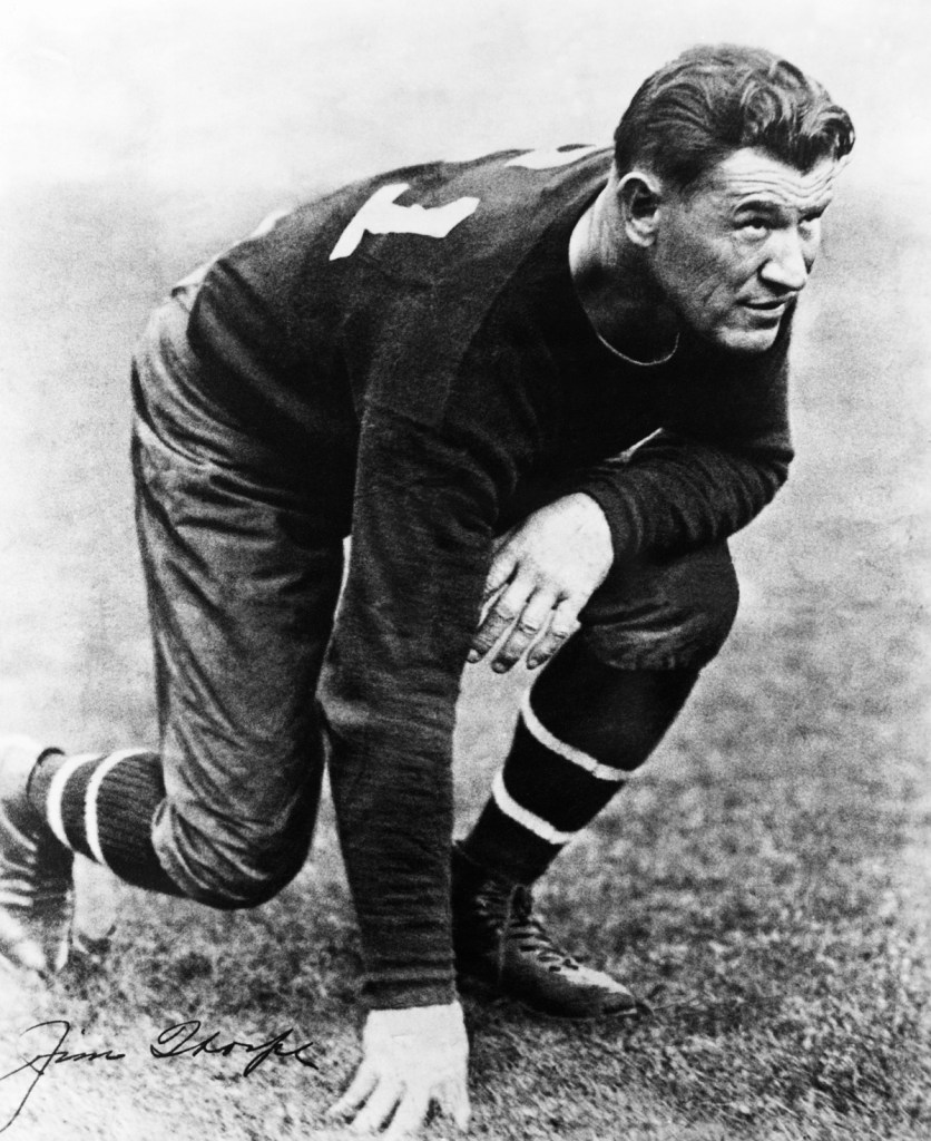 American Athlete Jim Thorpe Crouching Published December 15, 2012 at 1200 × 1470 in Jim Thorpe: The Greatest Athlete in The World Jim Thorpe playing football